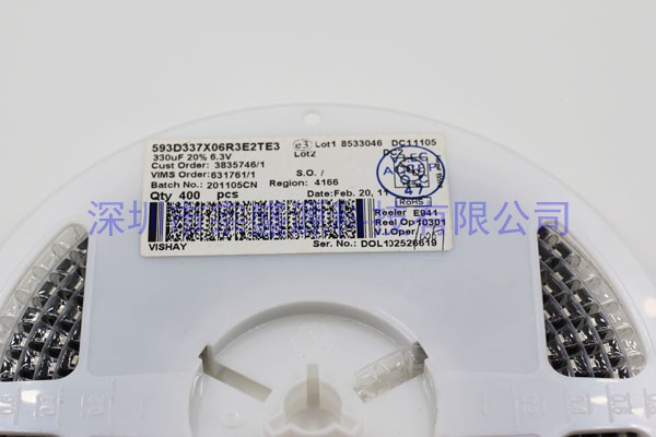 產品名稱:VISHAY鉭電容 7343 6.3V 330UF 593D337X06R3E2TE3