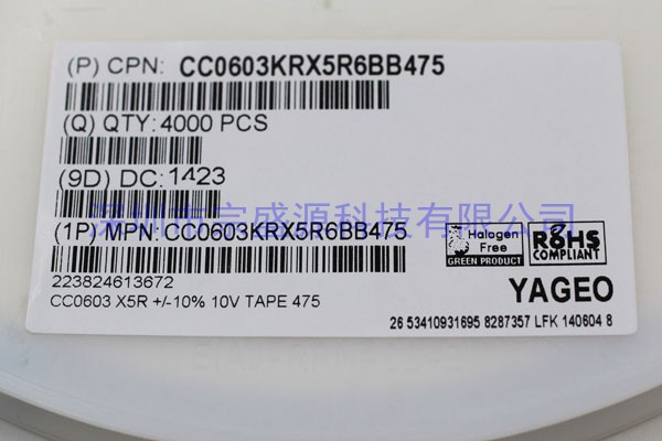 產(chǎn)品名稱:YAGEO電容 0603 10V 4.7UF CC0603KRX5R6BB475