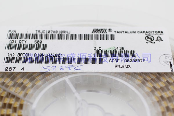 產品名稱:AVX鉭電容 107A 6032 10V 100UF C型