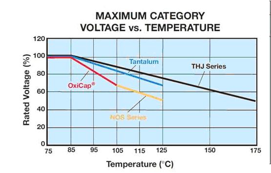 這是在一個(gè)電容器上可以連續(xù)施加的最高電壓,在+85°C 時(shí)它等于額定電壓,在125 °C時(shí)它是2/3VR,超過(guò)這個(gè)溫度會(huì)有一個(gè)線性的降額。