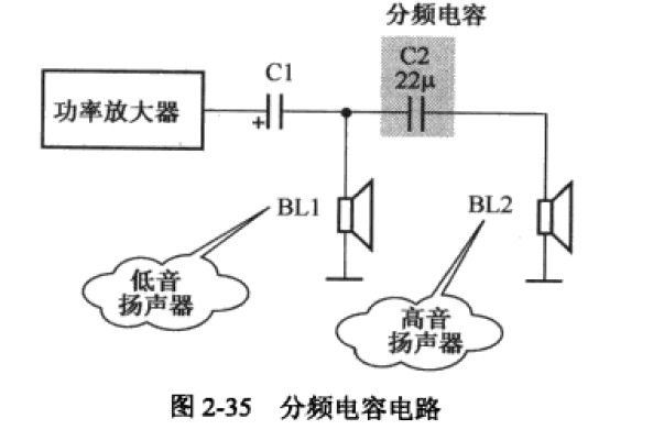 2.上述分頻陶瓷電容電路中,高音頻信號也能加到低音揚聲器上,但是低音頻揚聲器的高頻特性不好,所以重放高音主要由高音揚聲器BL2完成。如果不了解低音揚聲器還原高音的效果不好這一特性,就無法理解低音揚聲器為何不能重放高音。