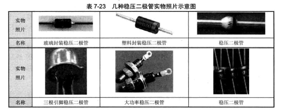 如表7-23所示是幾種穩壓二極管實物照片示意圖。