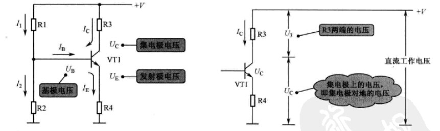 圖8-11 NPN型三極管各電極電壓和電流示意圖 圖8-12 三極管集電極電壓示意圖