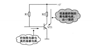集電極電流由直流工作電壓+V提供,但是集電極電流的大小受基極電流的控制,基極電流大,集電極電流大,基極電流小,集電極電流小,所以基極電流只是控制了直流電源+V為VT1集電極所提供電流的大小。