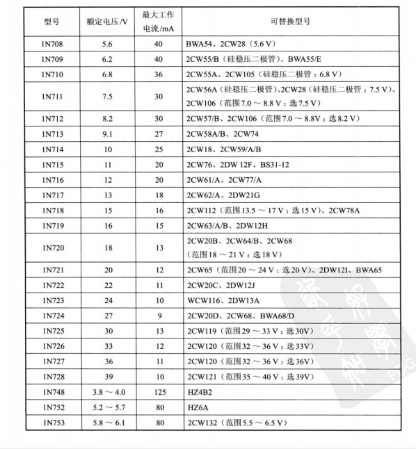 表7-8 常見穩壓二極管型號及可替換型號速查表